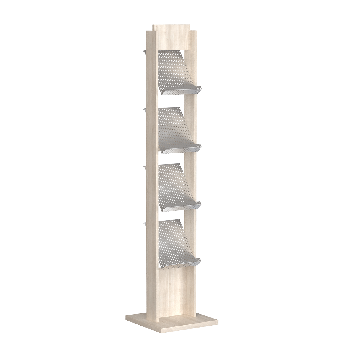 4 внутренние полки из перфорации открыты и доступны, сохраняют печатные материалы в аккуратном состоянии. Здесь легко упорядочить, представить до 40 журналов и буклетов формата А4 толщиной 5 мм.