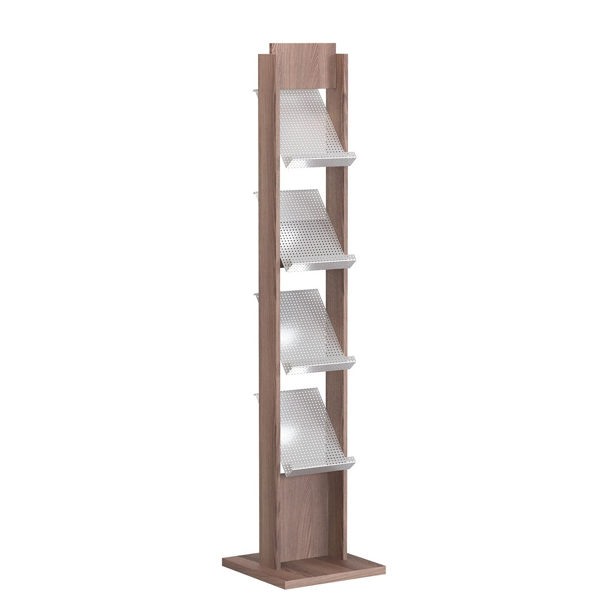 4 внутренние полки из перфорации открыты и доступны, сохраняют печатные материалы в аккуратном состоянии. Здесь легко упорядочить, представить до 40 журналов и буклетов формата А4 толщиной 5 мм.