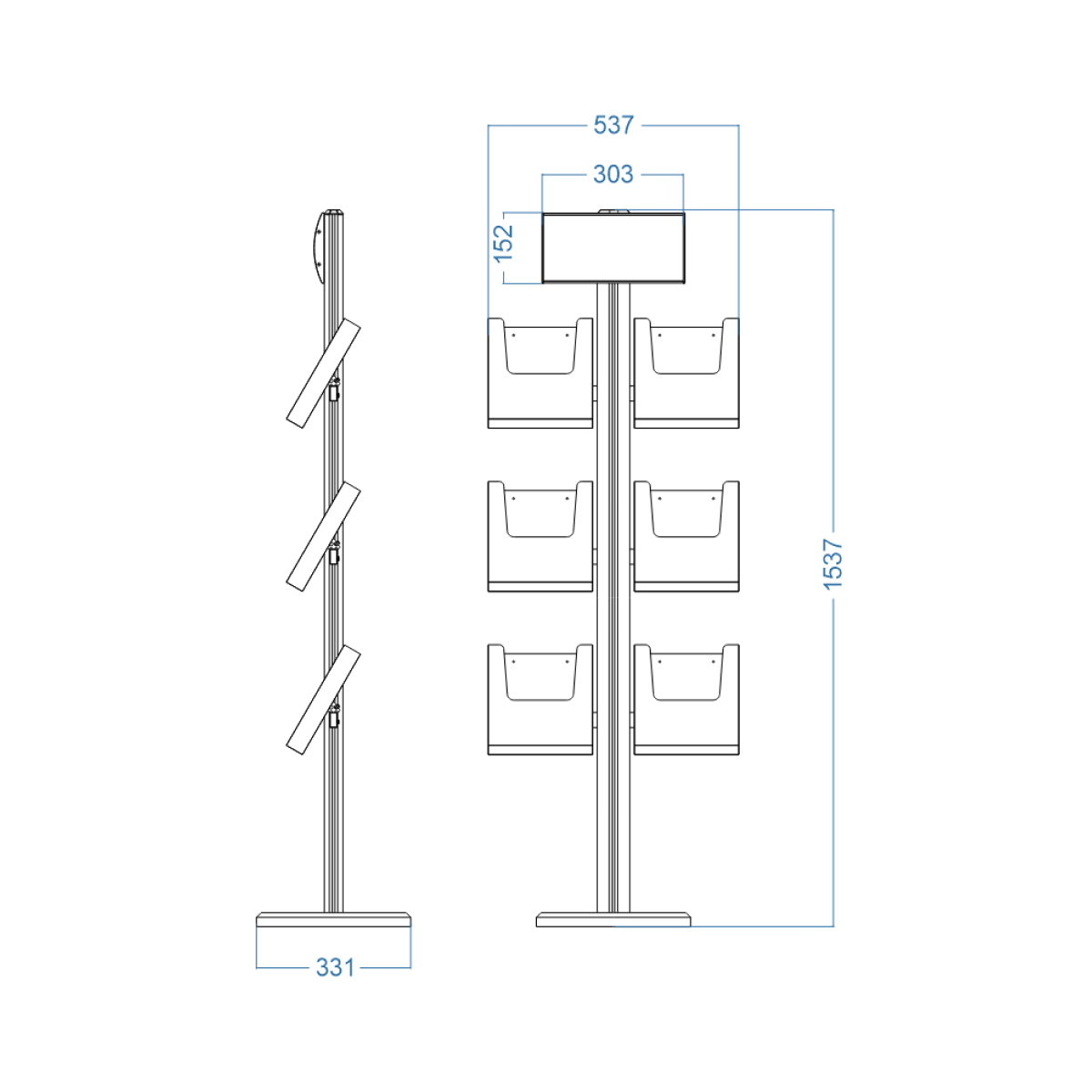 Основная особенность буклетницы: карманы из литьевого полистирола можно регулировать по высоте всей стойки. Каждый такой карман прослужит дольше за счет литьевой технологии изготовления. Доставляем буклетницу бережно в упакованном виде, - карманы и основание с креплениями.