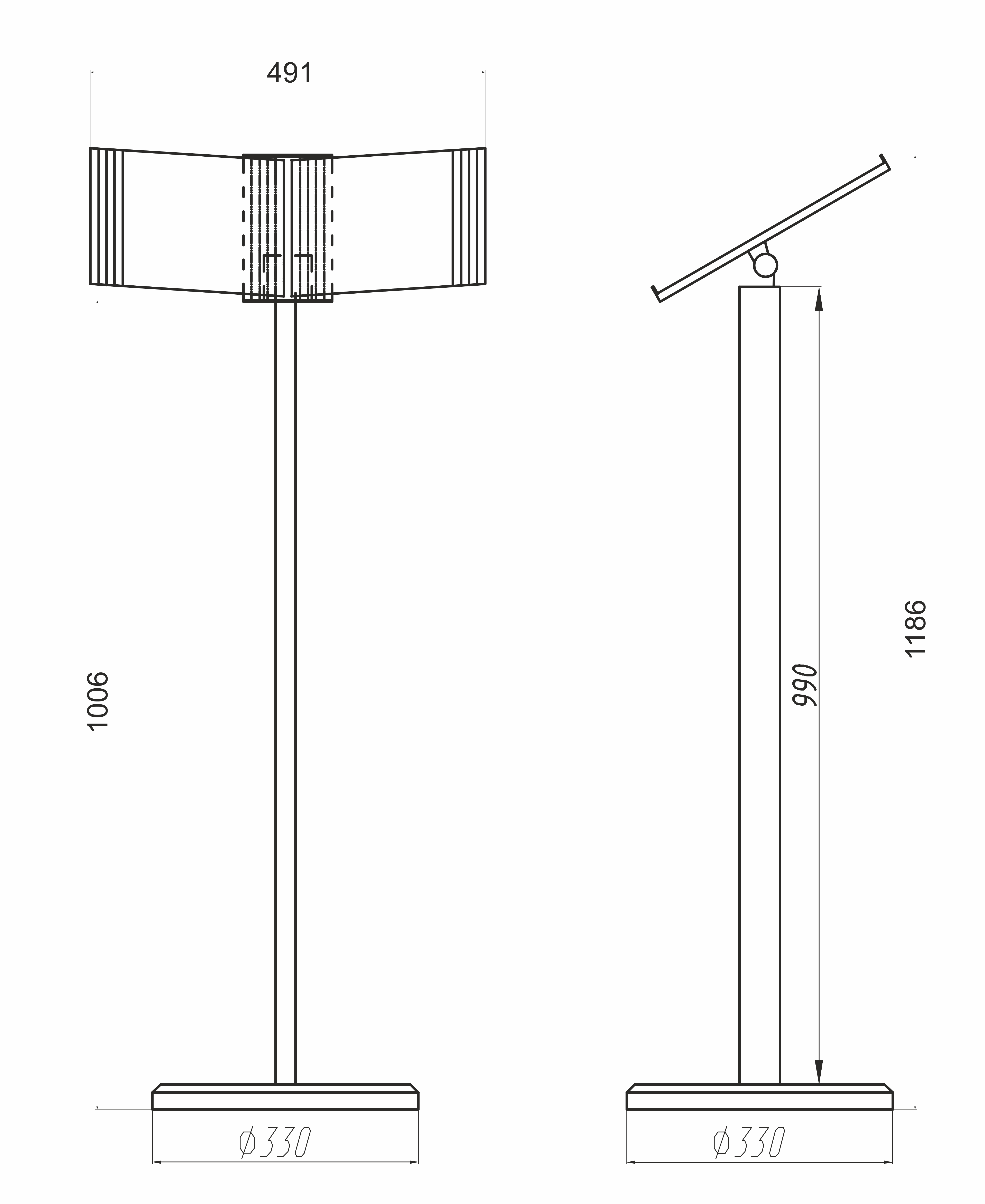 В одной такой демосистеме помещается до 20 документов, которые удобно просматривать. Таким образом, привлечете внимание гостей и сэкономите место у ресепшн. Угол наклона демосистемы можно регулировать. Поэтому стойка удобна в использовании и подходит для подачи информации человеку любого роста.
