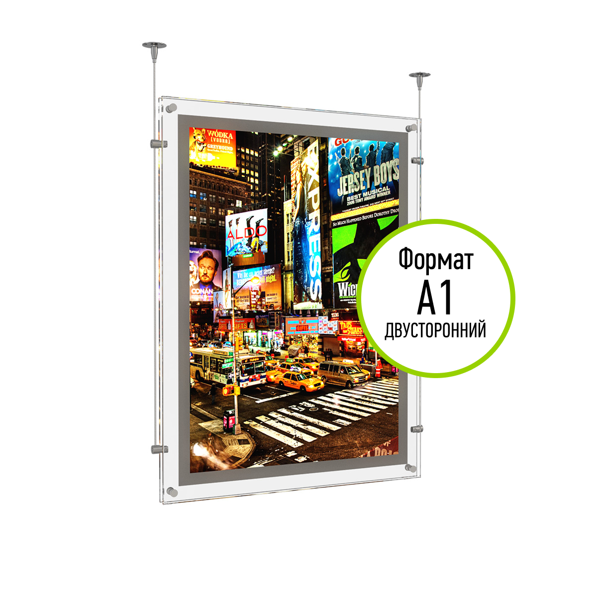 Подвесная двусторонняя тонкая световая панель А1 для рекламы КРИСТАЛЛ-02.А1.Tp