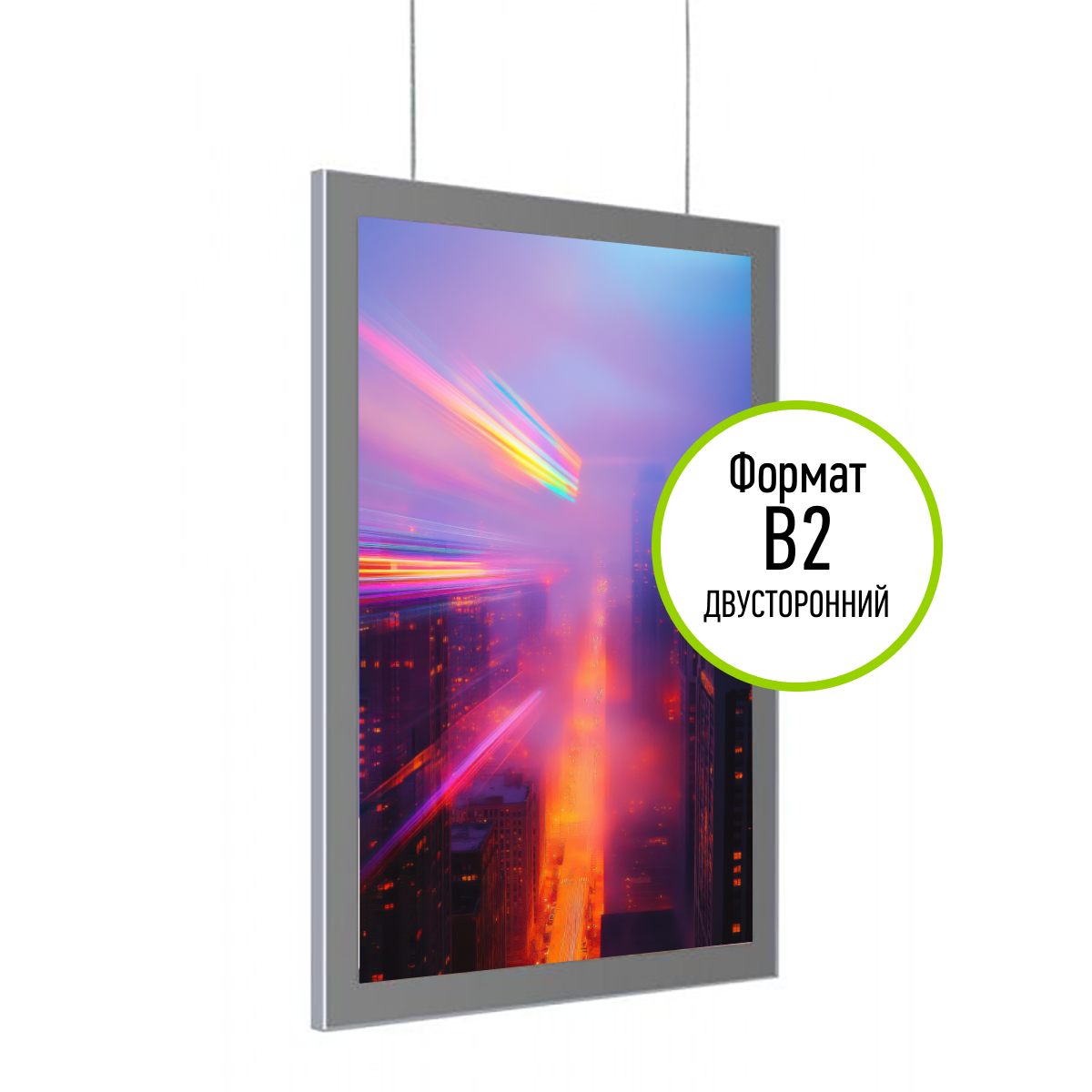 Подвесная двусторонняя тонкая световая панель с магнетик-рамкой В2 МАГНИЛАЙТ-02.В2.Gr