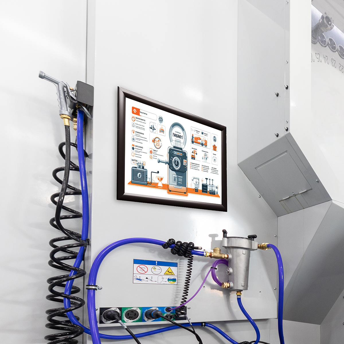 Для крепления рамки к стене или другой поверхности отщелкните профиль рамки с 4-х сторон, снимите защитный вкладыш; на нижнем профиле увидите 4 отверстия для крепления - в середине длинной и в середине короткой стороны; закрепите рамку двумя саморезами - вертикально или горизонтально.