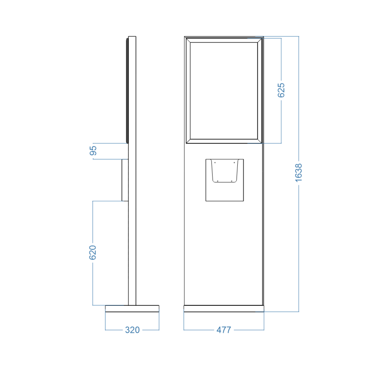 Стойка информационная односторонняя с клик-рамкой формата А2 и объемным карманом для буклетов А4. Изготовлена из ЛДСП, по периметру рамка из алюминиевого профиля с порошковой окраской черного цвета. Легкая смена изображения - отщелкните алюминиевый профиль, разместите постер с информацией, затем защитный вкладыш и защелкните профиль рамки. Дополнительно - заказывайте печать постера.