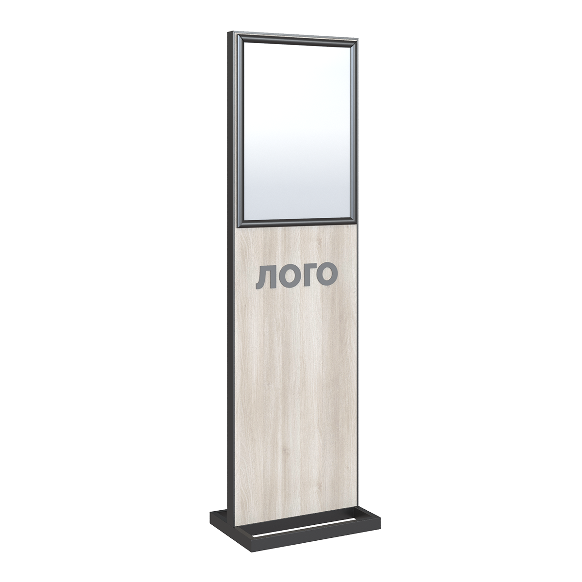 Стойка информационная односторонняя с рамкой формата А2 и объемными буквами с вашим логотипом. Размер букв - до 250мм.Стойка изготовлена из ЛДСП, рамка для информации из алюминиевого клик-профиля с порошковой окраской черного цвета. Легкая смена изображения - отщелкните алюминиевый профиль, разместите постер с информацией, затем защитный вкладыш и защелкните профиль рамки. Дополнительно - заказывайте печать постера.