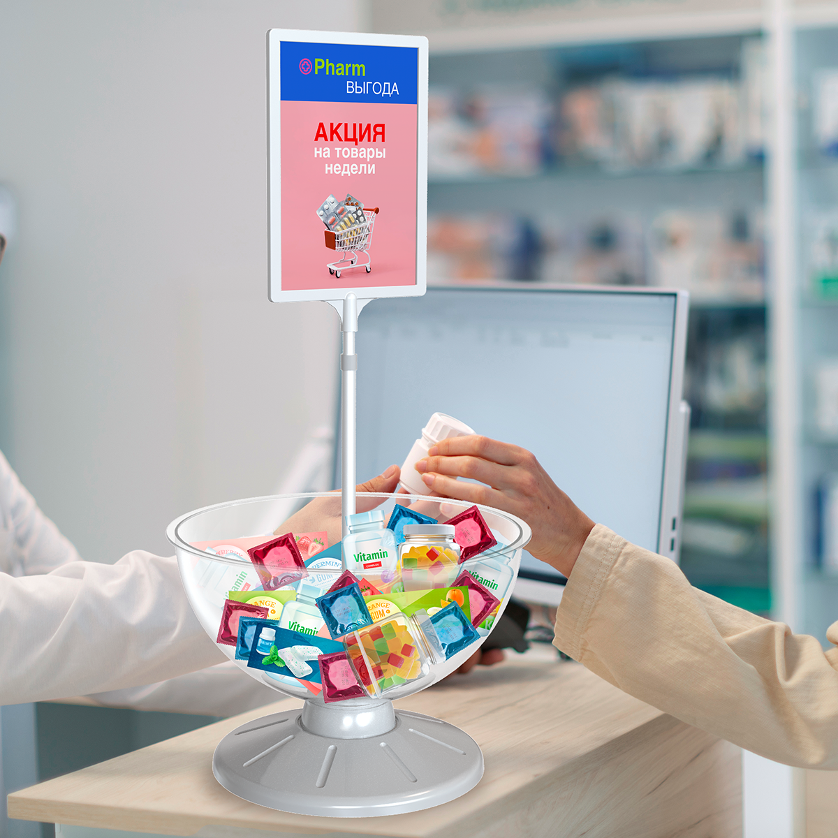 Подставка под товары настольная 185х300х295мм акриловая прозрачная