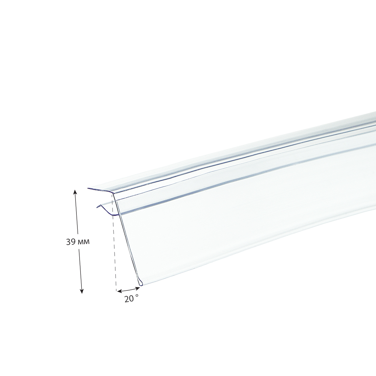 Ценникодержатель профильный GLS39 ш.39 L=988мм прозрачный ПРИБЫЛЬ-05.39х988.Tp